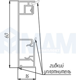 Купить плинтус алюминиевый прямоугольный вертикальный h60 мм, l=4,2м, алюминий глянец оптом и в розницу в городе Москва.