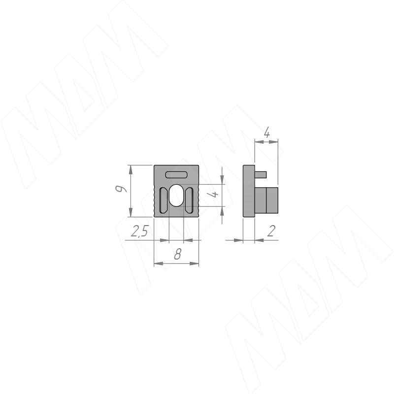 Размеры торцевой заглушки с отверстием для профиля SM7 (артикул LSPA-CAP-SM7-1)Установка накладного узкого профиль SM7 для ленты с основанием 5 мм, 7,8х9 мм (артикул LSP-SM7-ALU)