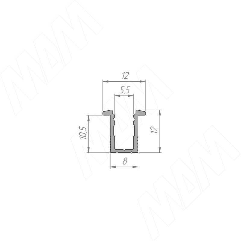 Профиль FM7, врезной узкий, для ленты с основанием 5мм, серебро, 12х12мм, L-2000 фото товара 2 - LSP-FM7-ALU-2000-0