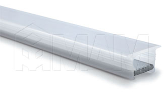 Врезной профиль для установки светодиодной ленты; часто используется для подсветки внутреннего пространства в шкафах-купе, корпусной мебели, подсветки рабочих зон в кухнях.