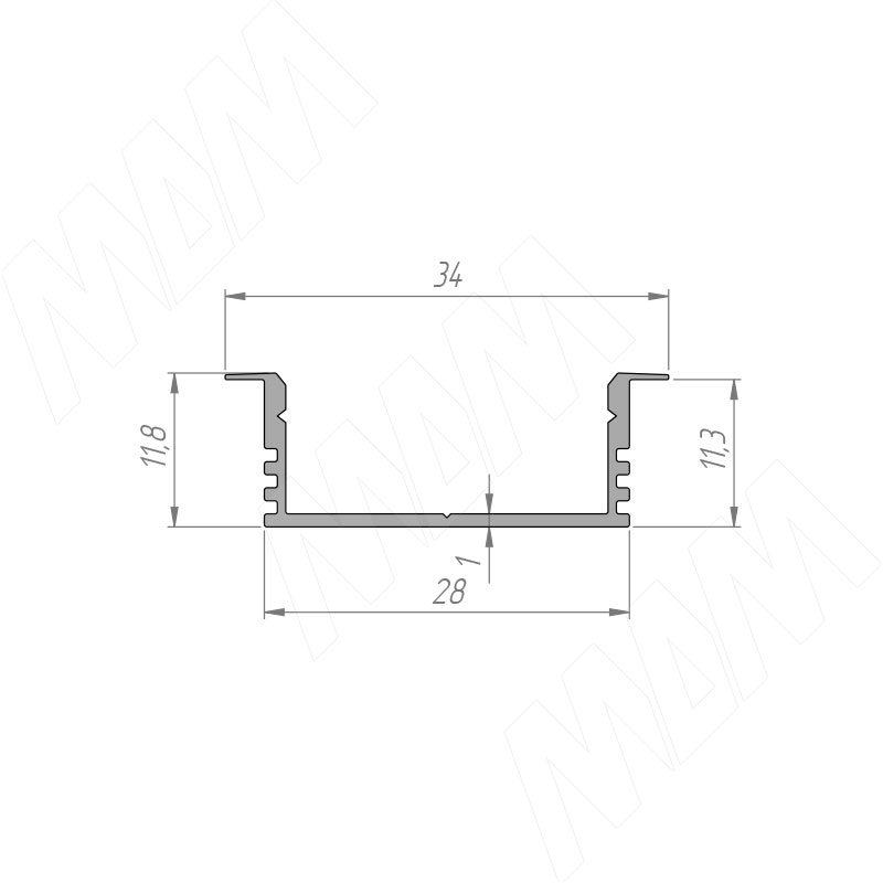 Профиль FM3, врезной широкий, серебро, 34х12мм, L-2000
