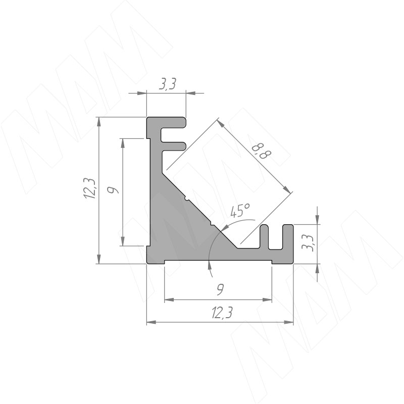 Размеры углового профиля СМ5, 12х12 мм, для углового рассеивателя (артикул LSP-CM5-ALU)Установка углового профиля СМ5, 12х12 мм, для углового рассеивателя (артикул LSP-CM5-ALU)