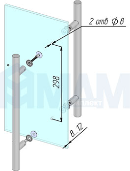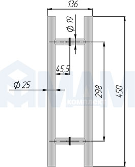 Porta ручка-рейлинг для стеклянных дверей 8-12 мм, хром/нержавеющая сталь, L450, D25