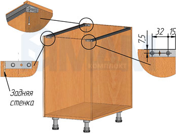 Купить профиль с заглушками с креплением к столешнице l=600 мм оптом и в розницу в городе Москва.