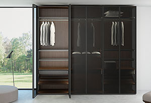 Профиль SECRET MAXI позволяет создавать распашные фасады для шкафов с использование петель SECRET MAXI и уголков HH165HSE или HH165SE.