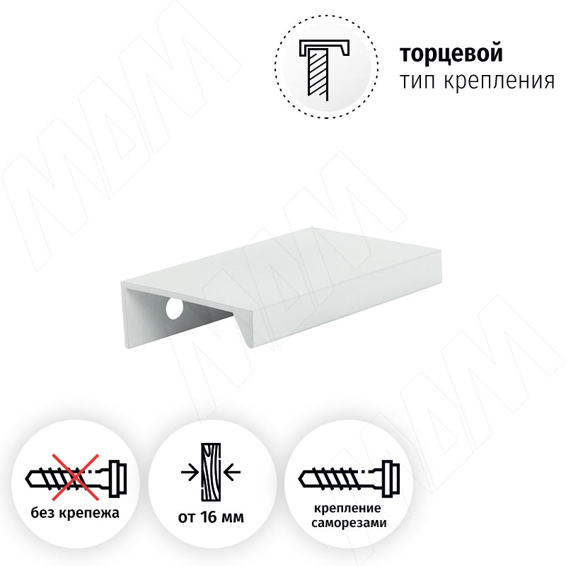 Купить профиль-ручка 32мм (l=60мм) крепление саморезами белый матовый (краска ral 9003) оптом и в розницу в городе Москва.
