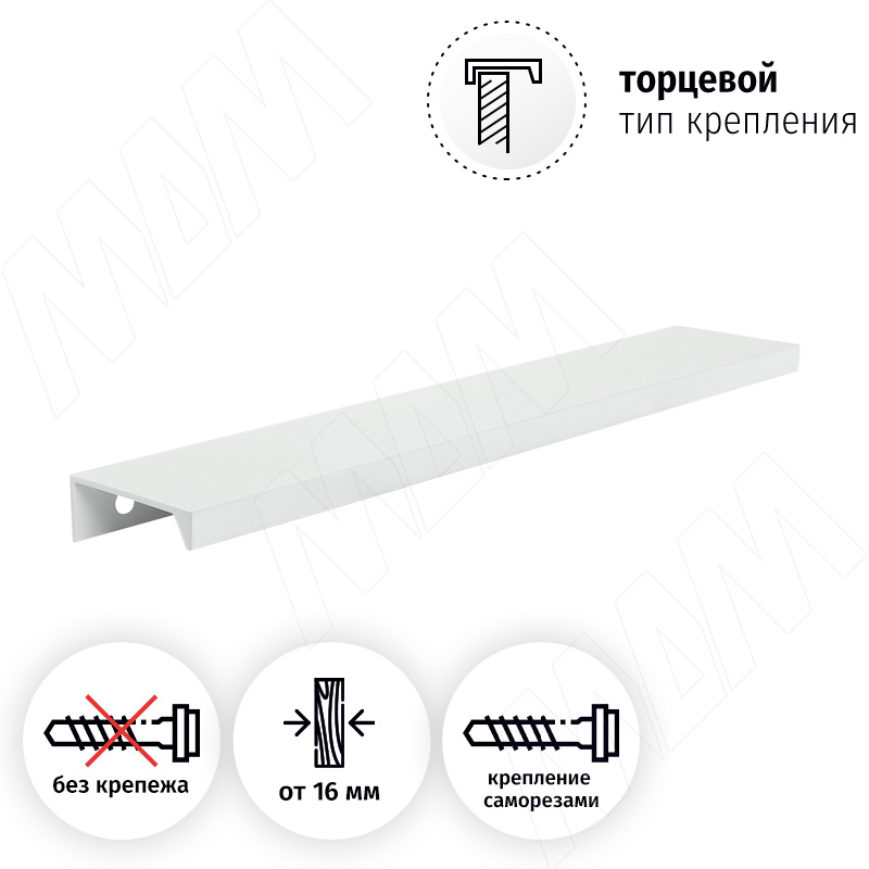 Профиль-ручка 192мм (L=220мм) крепление саморезами белый матовый (краска RAL 9003) фото товара 4 - PH.RU01.192.WHT Изображение товара Профиль-ручка 192мм (L=220мм) крепление саморезами белый матовый (краска RAL 9003) ракурс 4 - PH.RU01.192.WHT