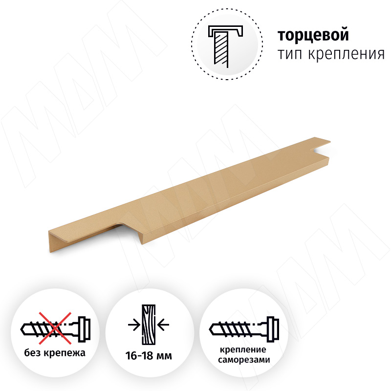 Профиль-ручка 224мм (L=296мм) крепление саморезами золото матовое (краска)