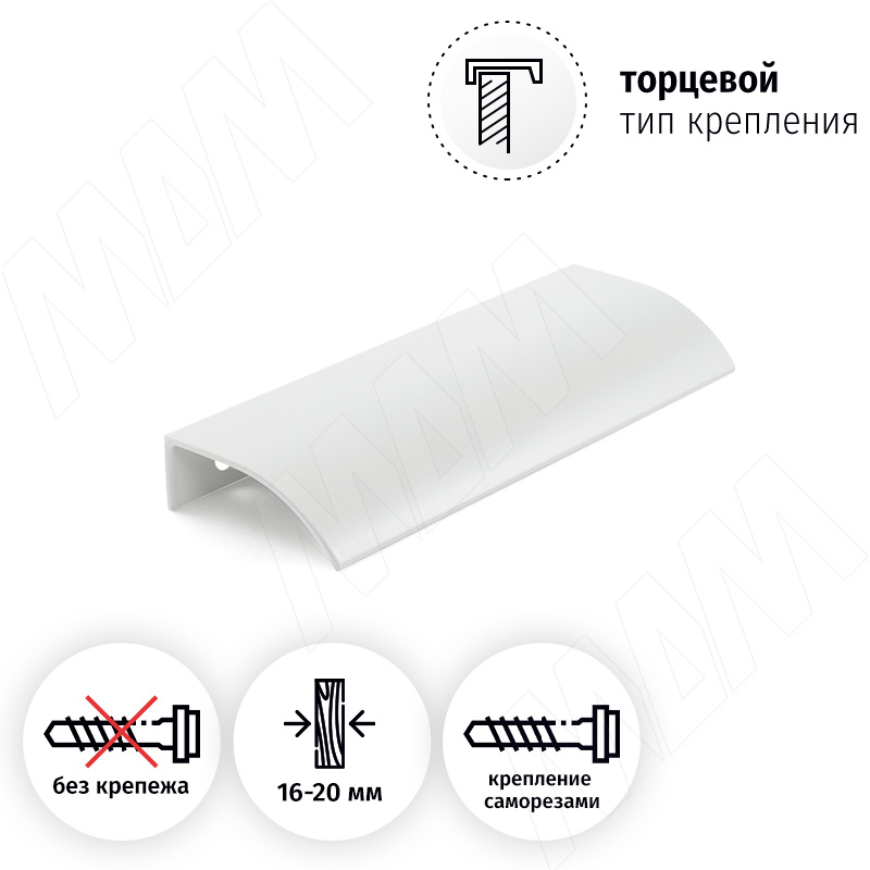 Купить профиль-ручка 96мм (l=124мм) крепление саморезами белый матовый (краска ral 9003) оптом и в розницу в городе Москва.