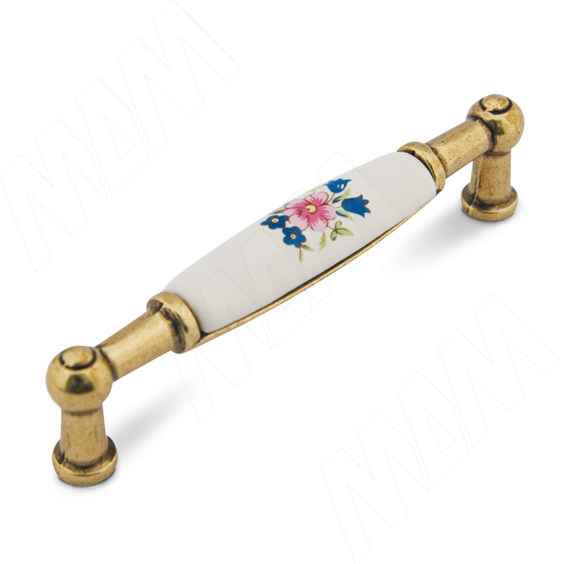 Ручка-скоба 96мм бронза состаренная/керамика цветы