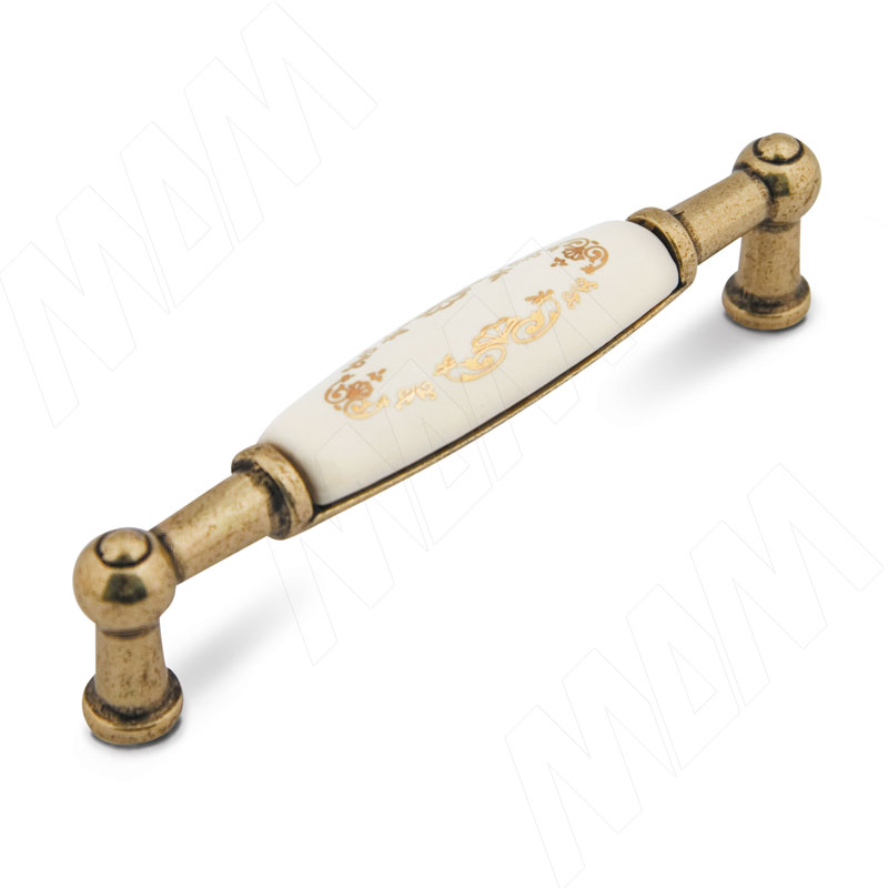 Ручка-скоба 96мм бронза состаренная/керамика золотые узоры