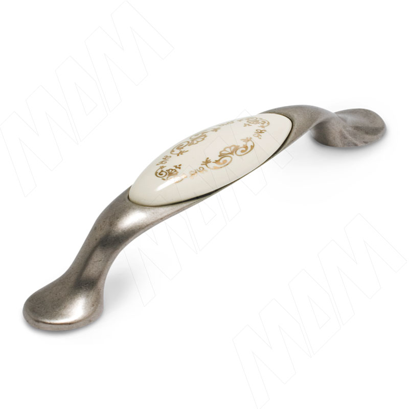 Купить ручка-скоба 96мм серебро состаренное/керамика золотые узоры оптом и в розницу в городе Москва.