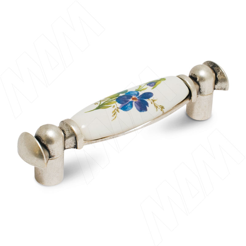 Ручка-скоба 96мм серебро состаренное/керамика фиалка