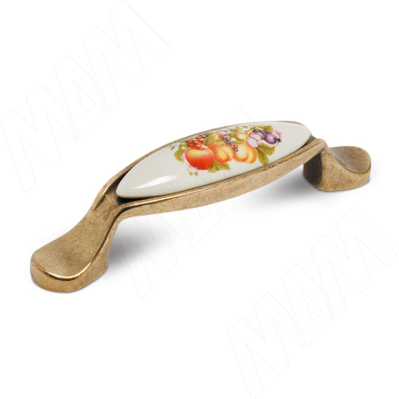 Ручка-скоба 96мм бронза состаренная/керамика фрукты