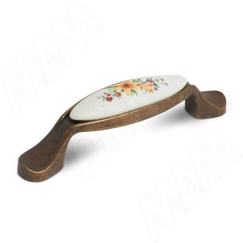 Купить ручка-скоба 96мм бронза патинированная/керамика мат. лилия оптом и в розницу в городе Москва.