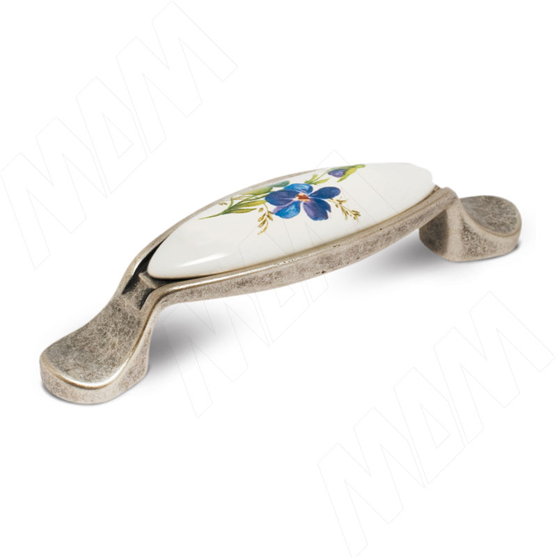 Ручка-скоба 96мм серебро состаренное/керамика фиалка