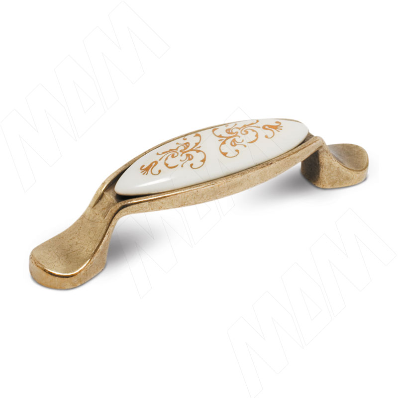 Ручка-скоба 96мм бронза состаренная/керамика золотые узоры