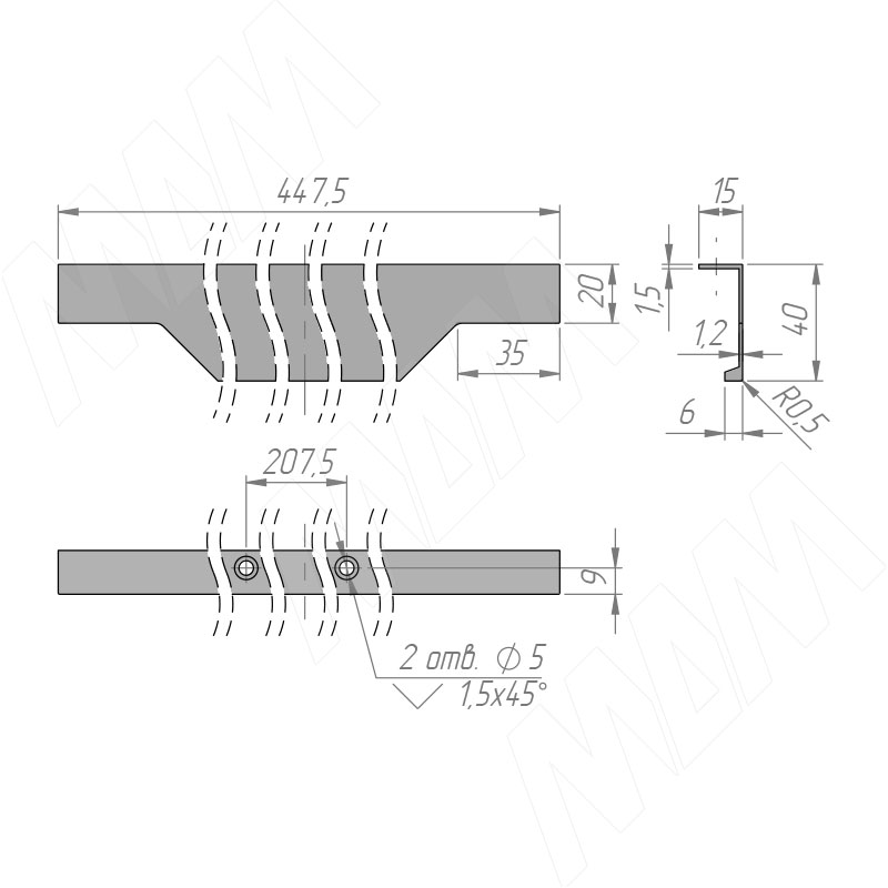 Купить профиль-ручка 450мм крепление саморезами алюминий полированный (анод) оптом и в розницу в городе Москва.