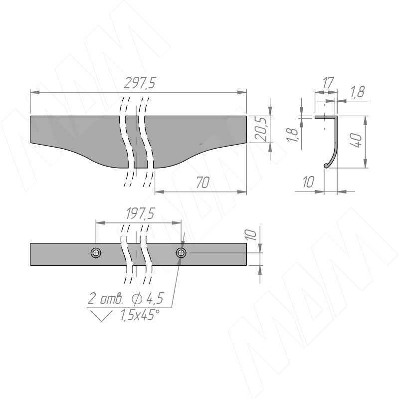 Купить профиль-ручка 300мм крепление саморезами алюминий полированный (анод) оптом и в розницу в городе Москва.