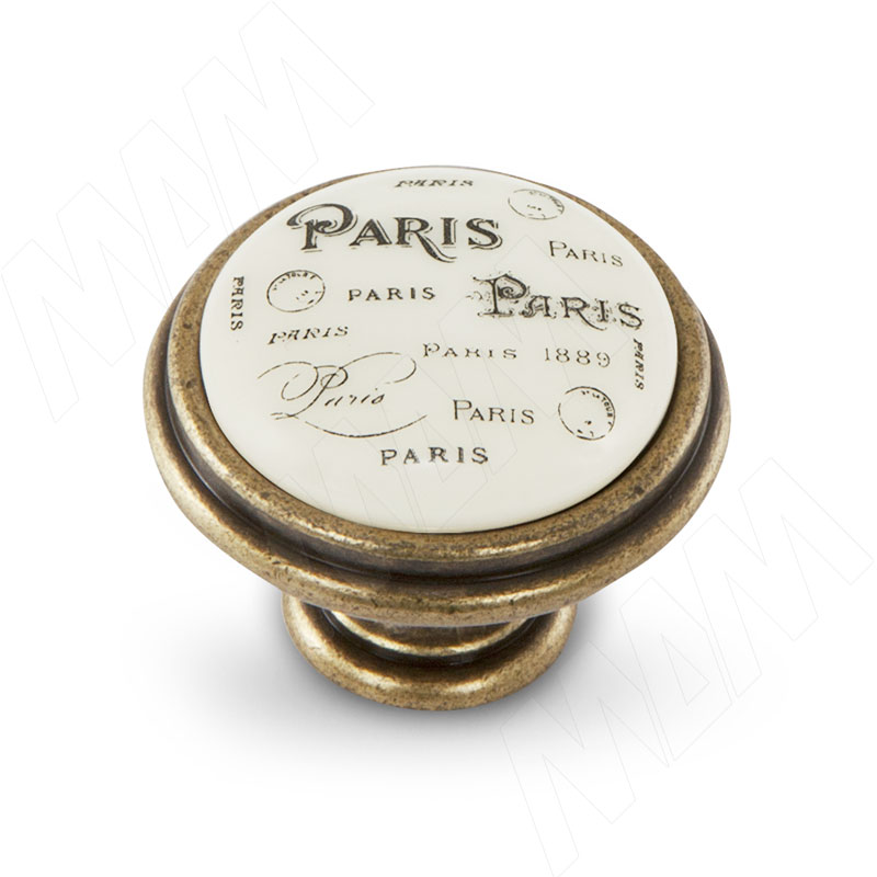 Ручка-кнопка D35мм бронза состаренная/керамика Paris