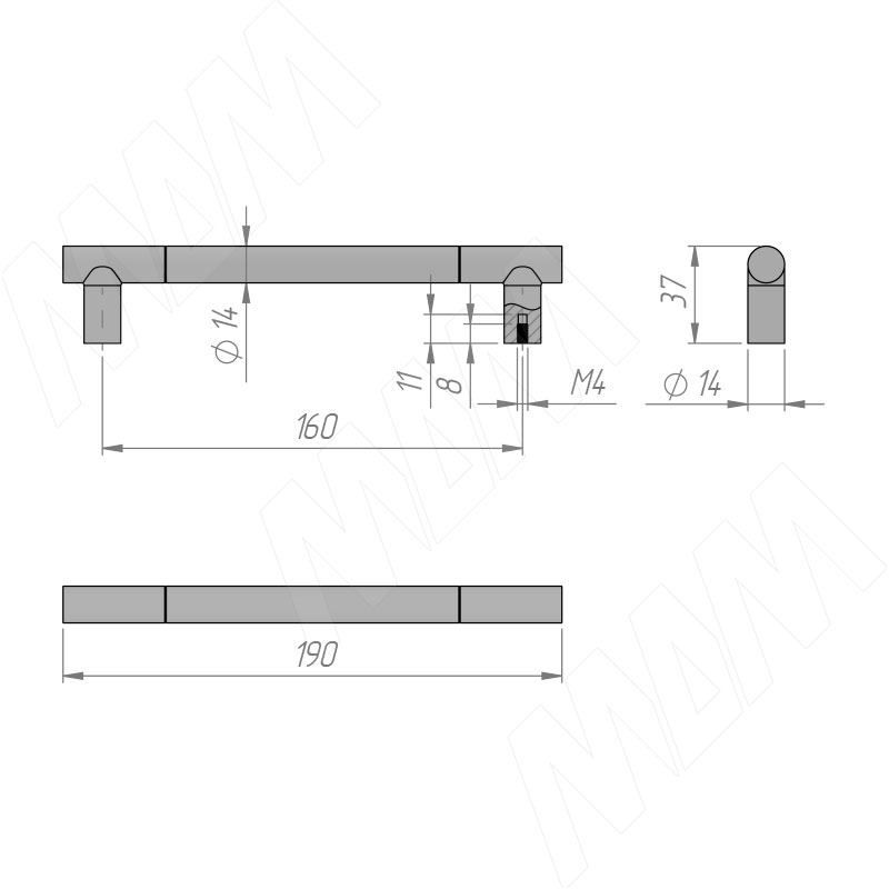 Размеры ручки-рейлинга с межцентровым расстоянием 160 мм (артикул WMN.886.160)