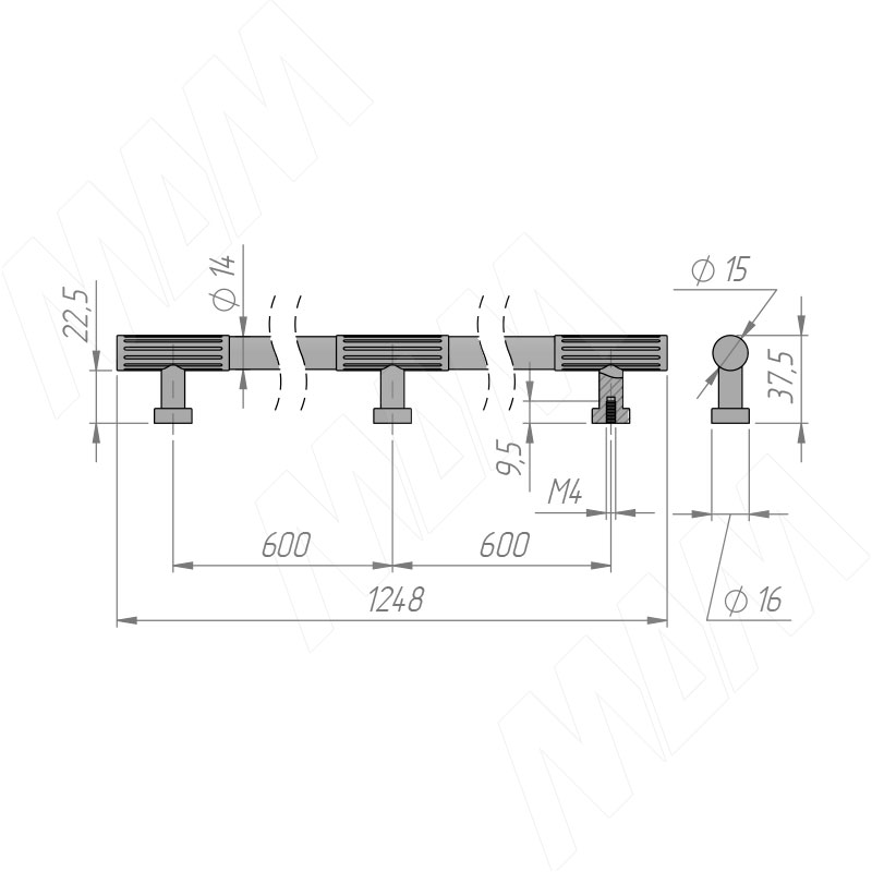 Размеры ручки-рейлинга с межцентровым расстоянием 600/1200 мм (артикул WMN.884.1200)Установка ручки-рейлинга с межцентровым расстоянием 600/1200 мм (артикул WMN.884.1200)