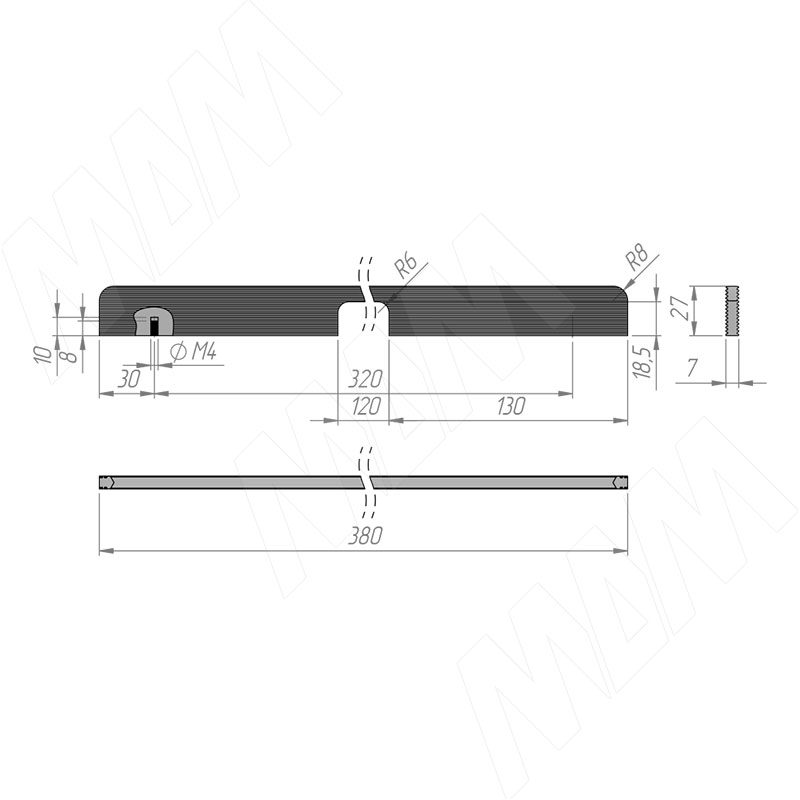Размеры профиль-ручки с межцентровым расстоянием 320 мм  (длина 380 мм) (артикул PH.RU42.380)