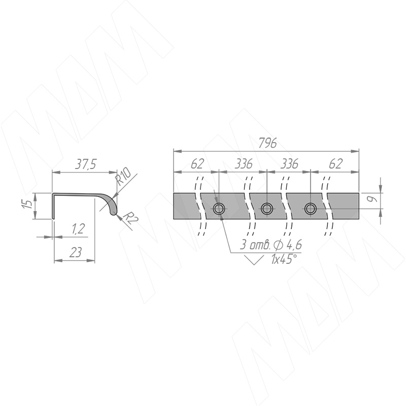 Профиль-ручка 672мм (L=796мм) крепление саморезами алюминий матовый (анод)