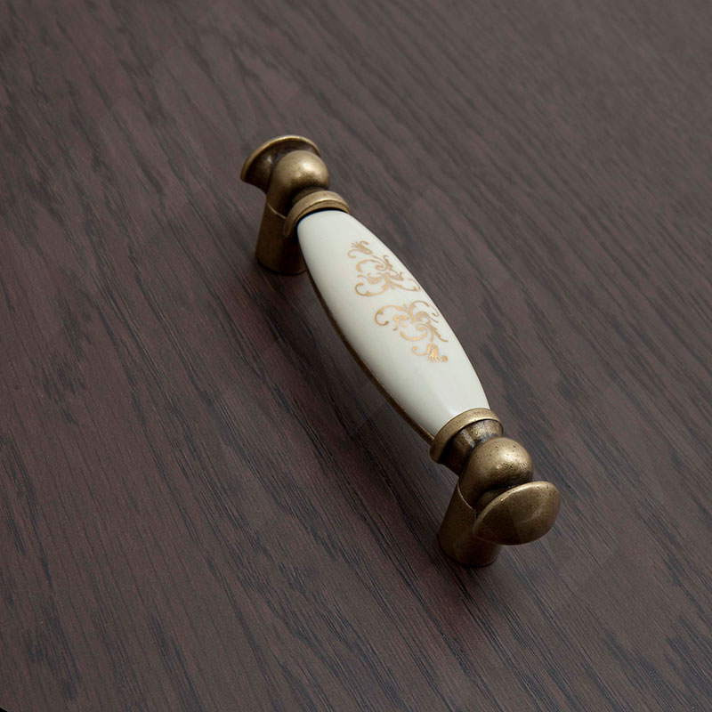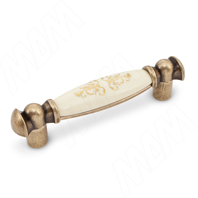 Ручка-скоба 96мм бронза состаренная/керамика золотые узоры