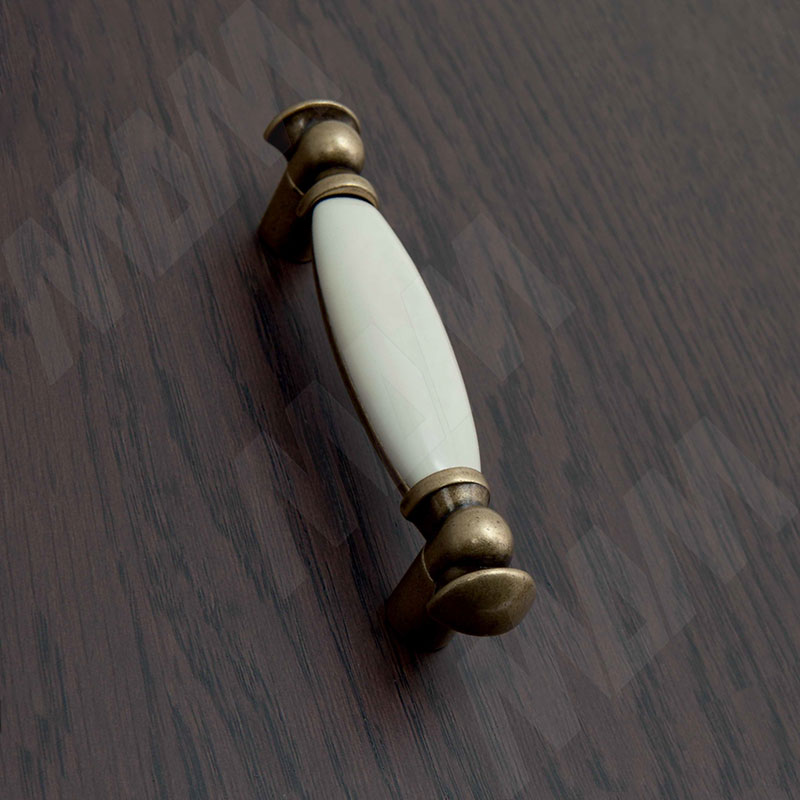 Ручка-скоба 96мм бронза состаренная/керамика молочная