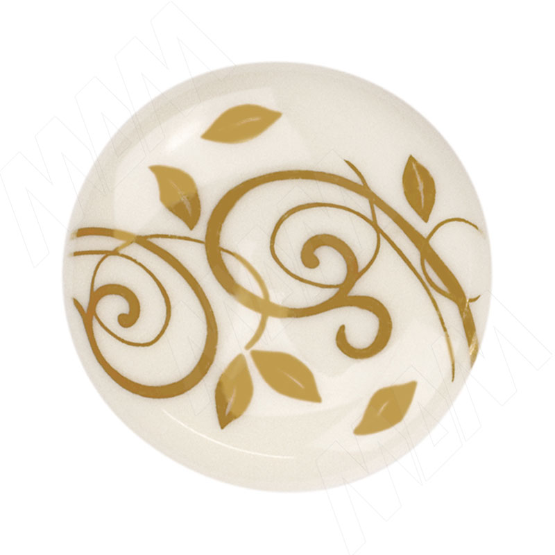 Ручка-кнопка D35мм cлоновая кость/золото винтаж керамика золотые узоры