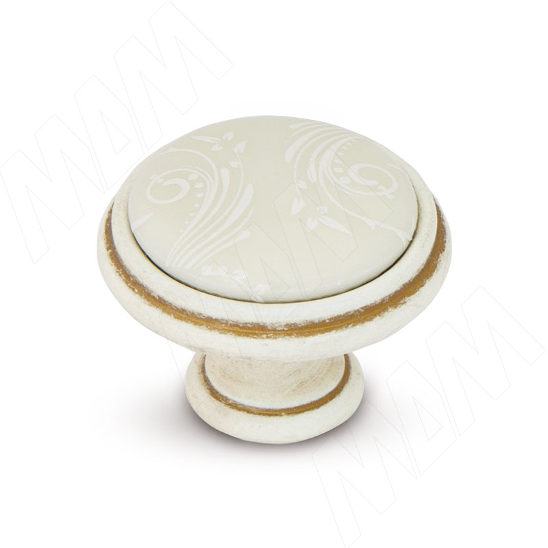 Ручка-кнопка D35мм cлоновая кость/золото винтаж, керамика белые узоры