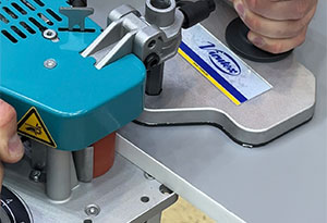 Применяется для удаления торцевых свесов кромки с обеих сторон детали, не повреждая при этом уже нанесённую кромку на перпендикулярные торцы.