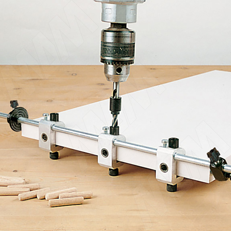 Сборочное приспособление для соединения плит толщиной 16 мм и 19 мм с помощью шкантов (Ø 8 мм) или евровинтов. Для точного и надежного соединения. Высококачественная отделка без необходимости последующей подгонки. Можно выполнить любой тип соединения: как Г-образный, так и Т-образный. Идеально подходит для сборки в цеху или при монтаже на объекте.