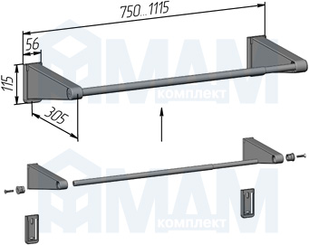 Комплектация: 2 менсолодержателя с крепежом, 1 штанга телескопическая (750–1150 мм)