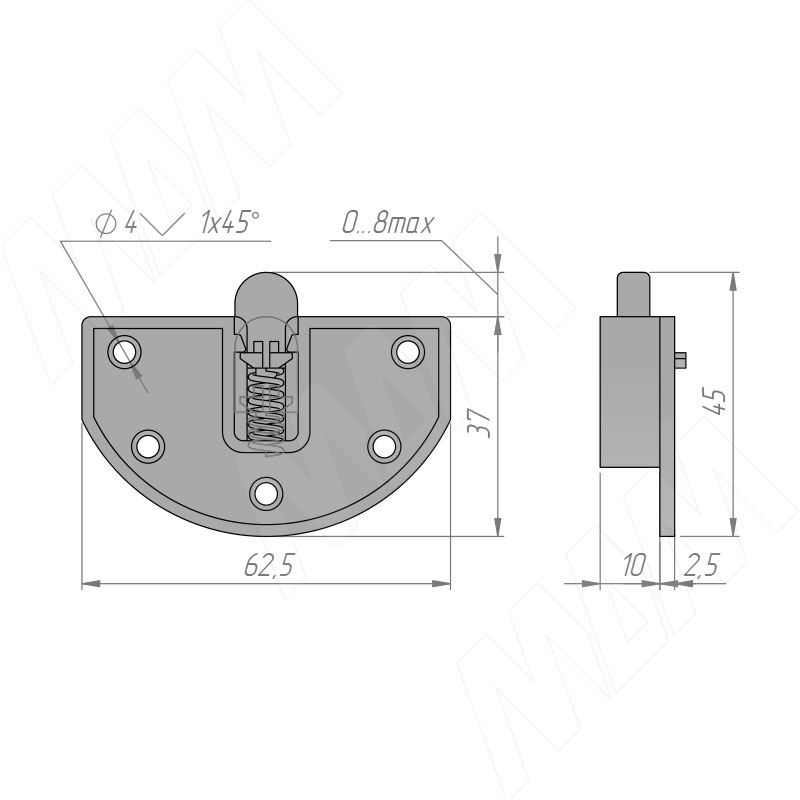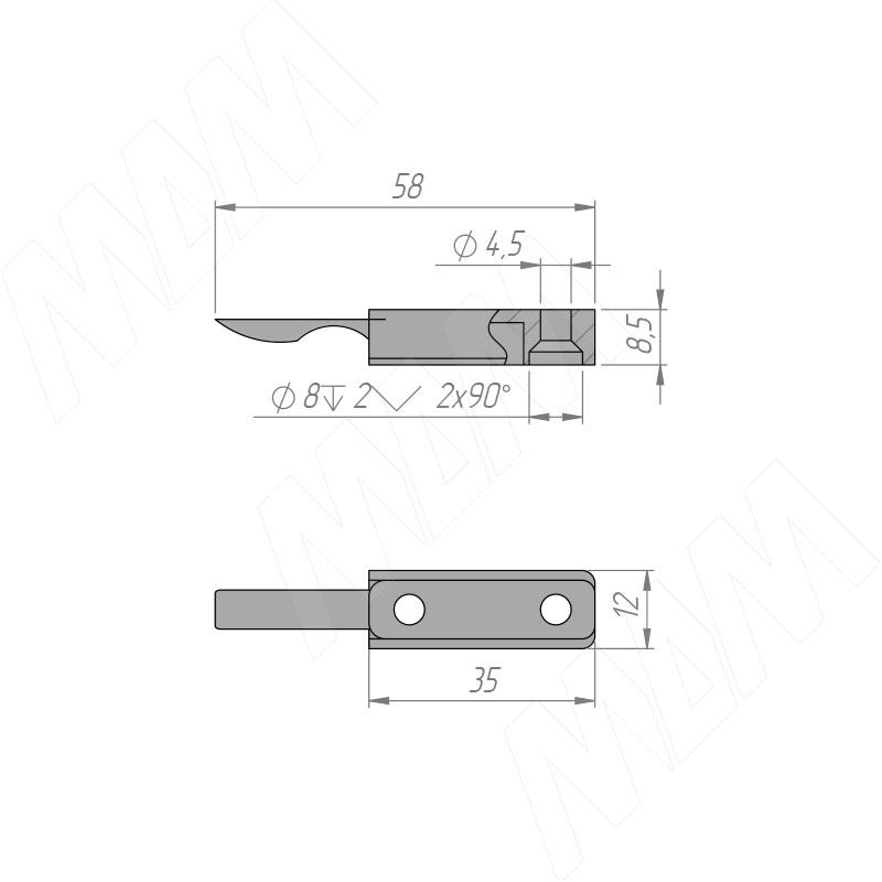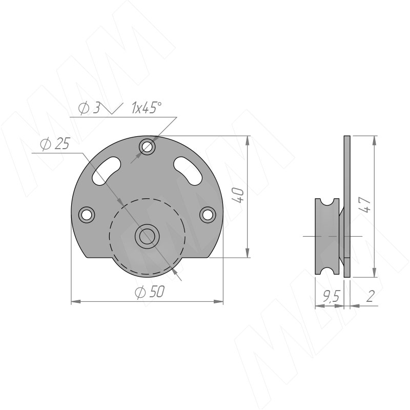 Размеры верхнего ригеля раздвижной системы IKM30 (артикул IKM30)Размеры нижнего ролика раздвижной системы IKM30 (артикул IKM30) Размеры стопора раздвижной системы IKM30 (артикул IKM30)