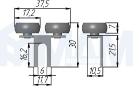 Комплектация: нижний ролик — 2 шт., винт для крепления нижних роликов — 2 шт., саморез с цилиндрической головкой SW5,0 X 35 KB/ШТ — 4 шт., верхний ролик симметричный — 2 шт.