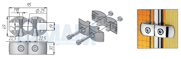 Купить держатель (для панели и стекла, двусторонний) хром с уплотнителем оптом и в розницу в городе Москва.