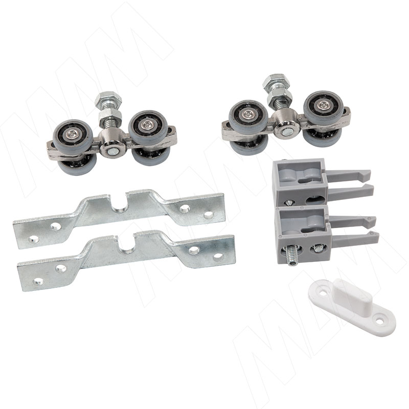 Комплектация: верхний ролик — 2 шт., стопор — 2 шт., крепление для ролика — 2 шт., белый направляющий шип, крепеж