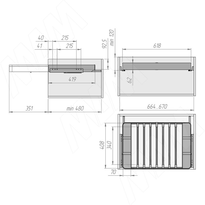 Установка вешала ESENTA с плавным закрыванием для брюк в корпус шириной 700 мм (артикул ES70TR), схема 1Установка вешала ESENTA с плавным закрыванием для брюк в корпус шириной 700 мм (артикул ES70TR), схема 2