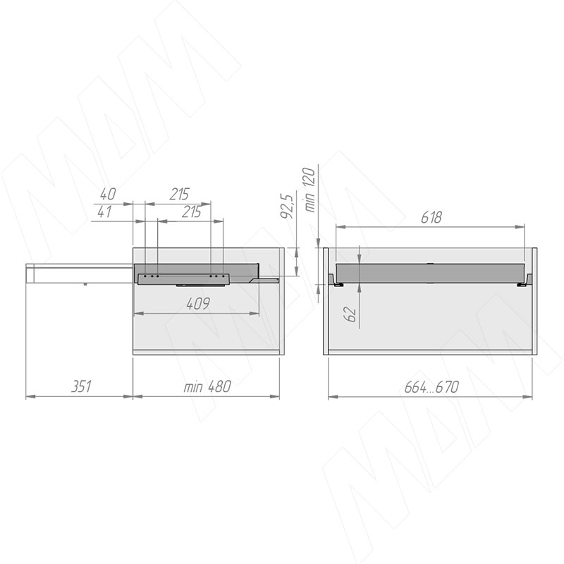 Установка выдвижного органайзера ESENTA с плавным закрыванием для аксессуаров  в корпус шириной 700 мм (артикул ES70OR), схема 1 Размеры выдвижного органайзера ESENTA с плавным закрыванием для аксессуаров  в корпус шириной 700 мм (артикул ES70OR)