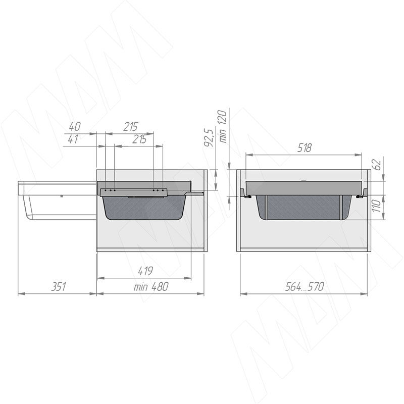 Установка выдвижной корзины ESENTA с плавным закрыванием для белья в корпус шириной 600 мм (артикул ES60BA), схема 1Установка выдвижной корзины ESENTA с плавным закрыванием для белья в корпус шириной 600 мм (артикул ES60BA), схема 2