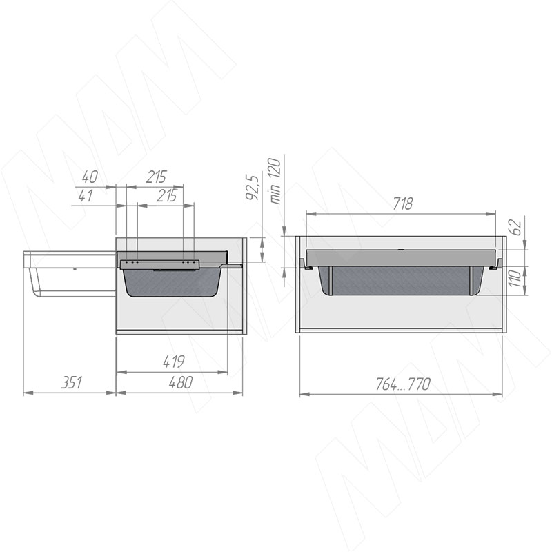 Установка выдвижной корзины ESENTA с плавным закрыванием для белья в корпус шириной 800 мм (артикул ES80BA), схема 1Установка выдвижной корзины ESENTA с плавным закрыванием для белья в корпус шириной 800 мм (артикул ES80BA), схема 2