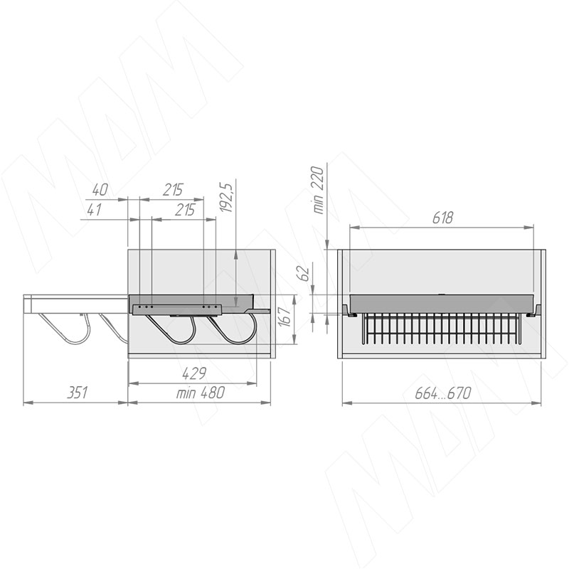 Установка выдвижной корзины ESENTA с плавным закрыванием для обуви в корпус шириной 700 мм (артикул ES70SH), схема 1Установка выдвижной корзины ESENTA с плавным закрыванием для обуви в корпус шириной 700 мм (артикул ES70SH), схема 2
