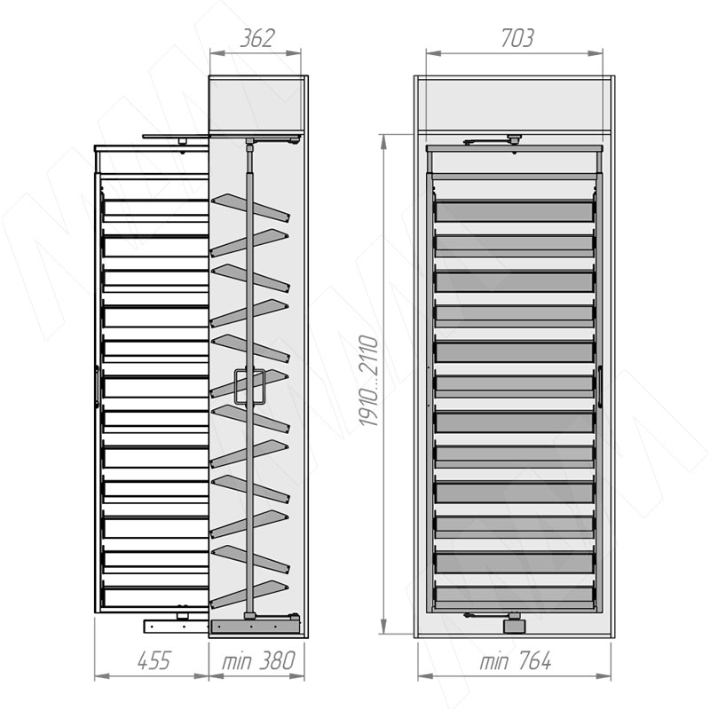 Установка поворотной обувницы ESENTA на 12 полок, высота 1910-2110 мм (артикул ESRSH12), схема 3