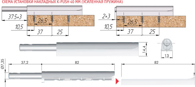 Купить k-push усиленный 40 мм накладной с магнитом, серый оптом и в розницу в городе Москва.