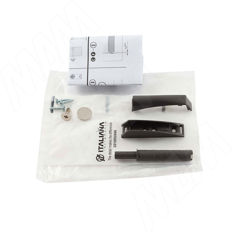 Комплект K-PUSH TECH толкатель 20 мм накладной с магнитом, антрацит, с крепежом и ответными планками