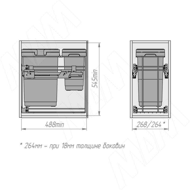 Установка системы KOMBI 30 с двумя ведрами для сортировки и хранения (артикул PKBGME302MG), схема 1 Установка системы KOMBI 30 с двумя ведрами для сортировки и хранения (артикул PKBGME302MG), схема 2