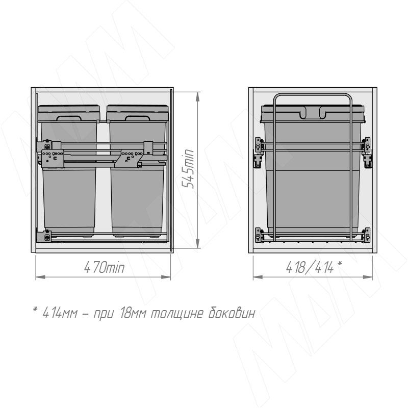 Установка системы KOMBI 45 с двумя ведрами для сортировки и хранения (артикул PKBGME452MG), схема 1 Установка системы KOMBI 45 с двумя ведрами для сортировки и хранения (артикул PKBGME452MG), схема 2