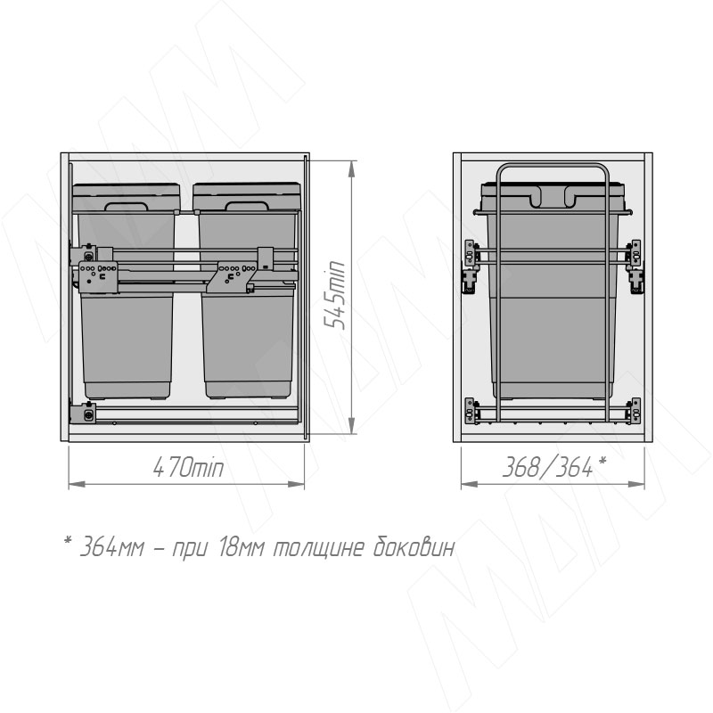 KOMBI 40 Система сортировки и хранения, 2 емкости (20л+20л), крепл. фасада, полн. выдвиж., плавн. закр., направл. Nova Pro